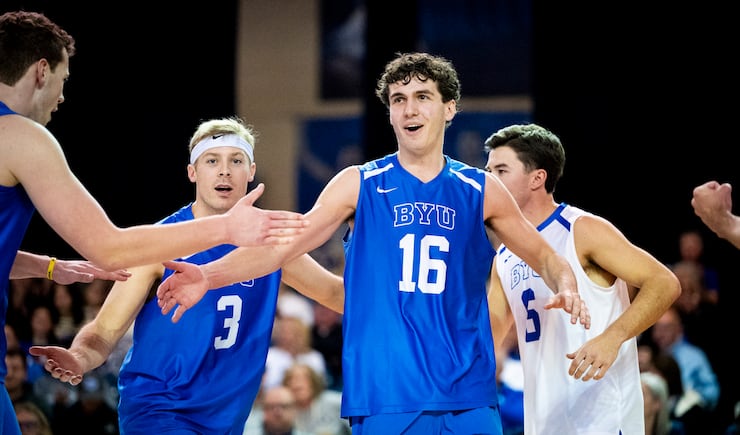 BYU outside hitter Connor Oldani (16) and his teammates celebrate a point during an NCAA men’s volleyball game against UC San Diego held at the George Albert Smith Fieldhouse in Provo on Friday, Jan. 16, 2026. | Isaac Hale, Deseret News