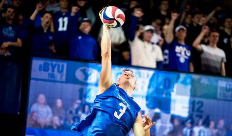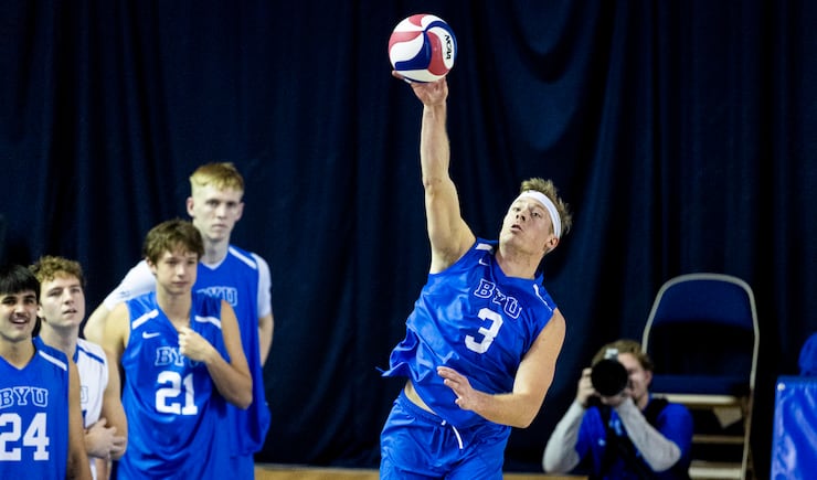 BYU setter Tyler Herget (3) sets the ball during an NCAA men’s volleyball game against UC San Diego held at the George Albert Smith Fieldhouse in Provo on Friday, Jan. 16, 2026. | Isaac Hale, Deseret News