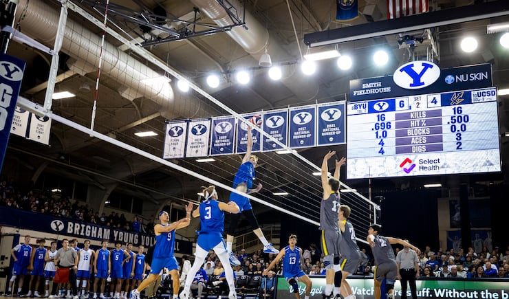BYU and UC San Diego compete during an NCAA men’s volleyball game held at the George Albert Smith Fieldhouse in Provo on Friday, Jan. 16, 2026. | Isaac Hale, Deseret News