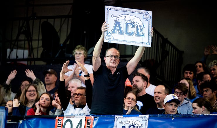 A BYU fan holds up a sign after the Cougars scored an ace against UC San Diego during an NCAA men’s volleyball game held at the George Albert Smith Fieldhouse in Provo on Friday, Jan. 16, 2026. | Isaac Hale, Deseret News