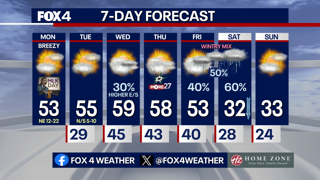 DALLAS – North Texas is bracing for a return to winter-like conditions as a series of cold fronts prepare to move through the region. Here is a look at the week ahead and the potential for a wintry mix this weekend.