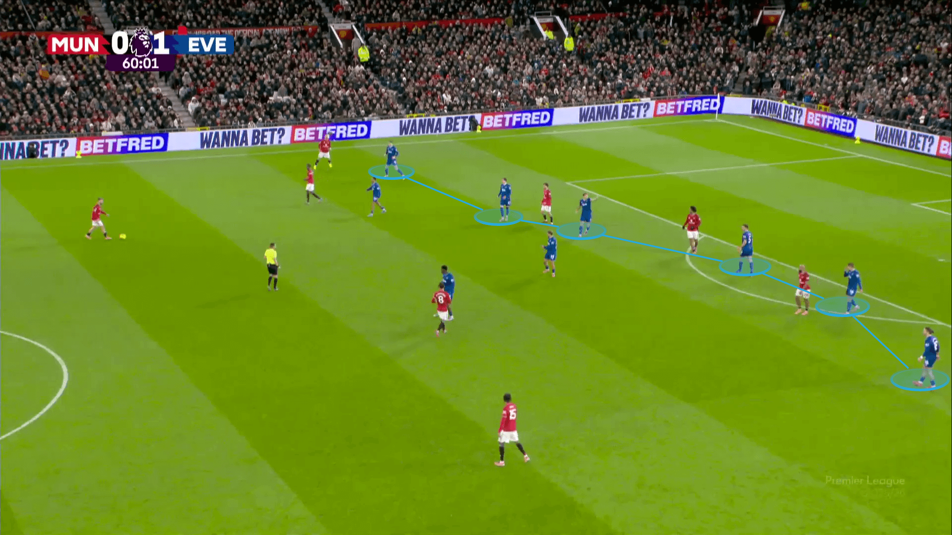 In November’s 1-0 home defeat against Everton, a game played largely against 10 men after Idrissa Gueye’s dismissal in the 13th minute, the opposition retreated into what was effectively a back six. United failed to commit a centre-back further forward to take advantage of their numerical advantage, and with few overload opportunities, the lack of individual spontaneity and risk-taking was glaring.