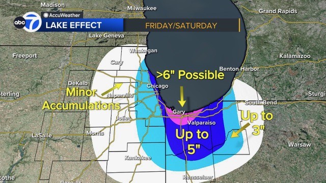 CHICAGO (WLS) — ABC7 meteorologists are keeping an eye on the next round of lake-effect snow forecast to impact parts of the Friday morning and afternoon commutes.