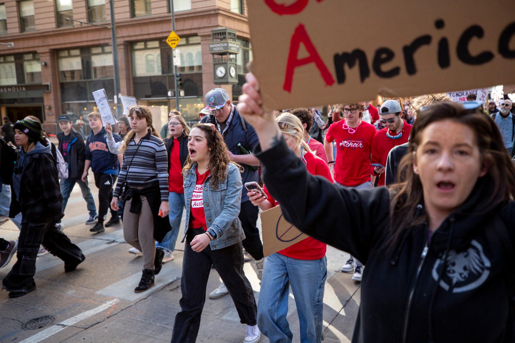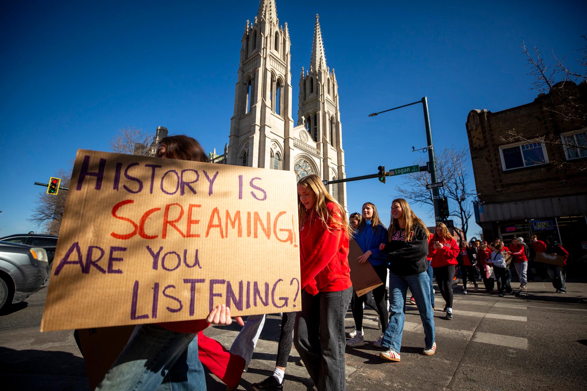 “Violence is violence, and people are people,” an 11th grader from East High School told CPR News. “I think that’s why a lot of students showed up today, because we’re just sick of injustice and the inhumane actions of our government.”