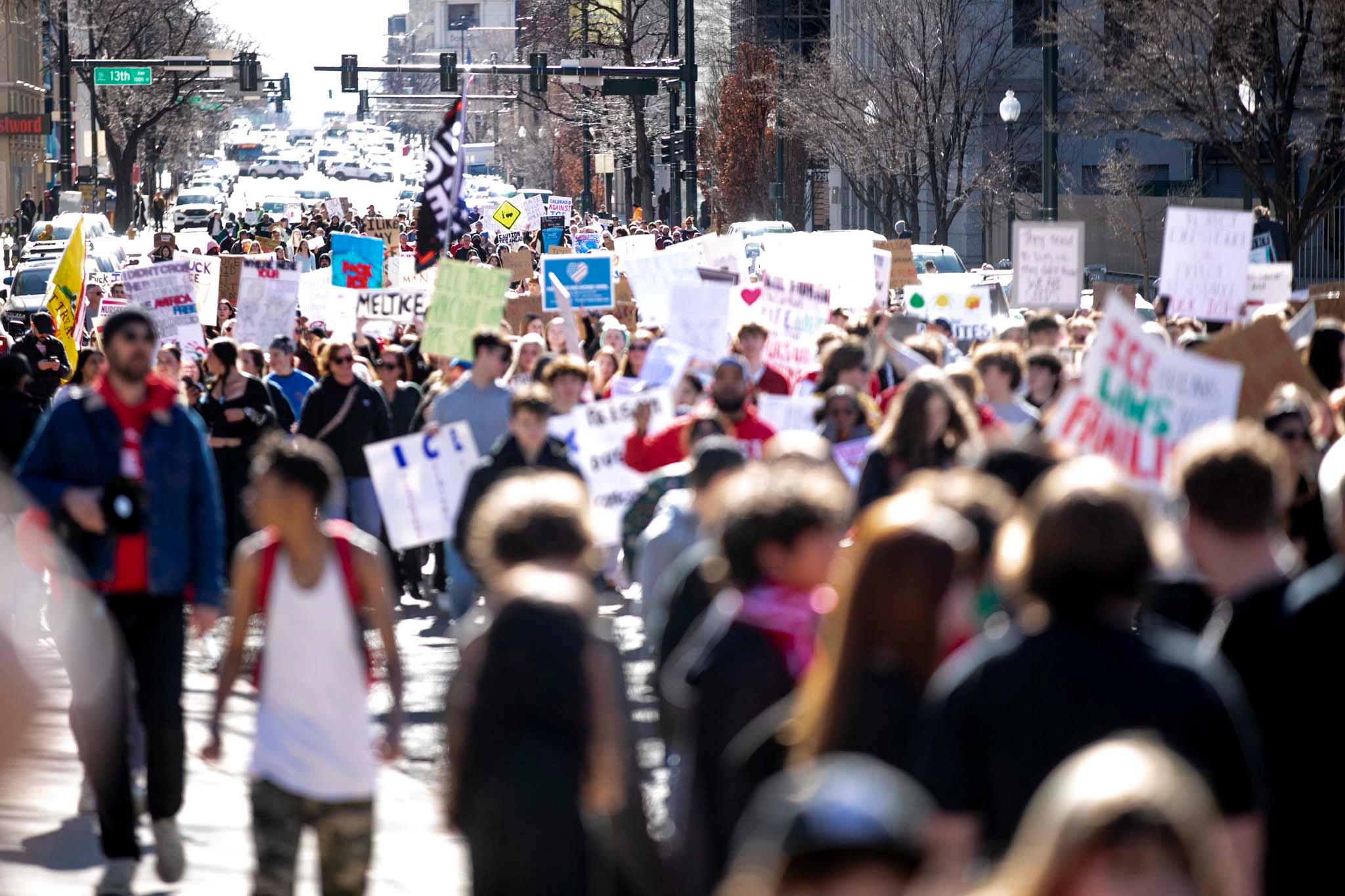 The majority of protesters in downtown Denver were from area high schools, many of which cancelled classes due to an anticipated high number of student and teacher absences.