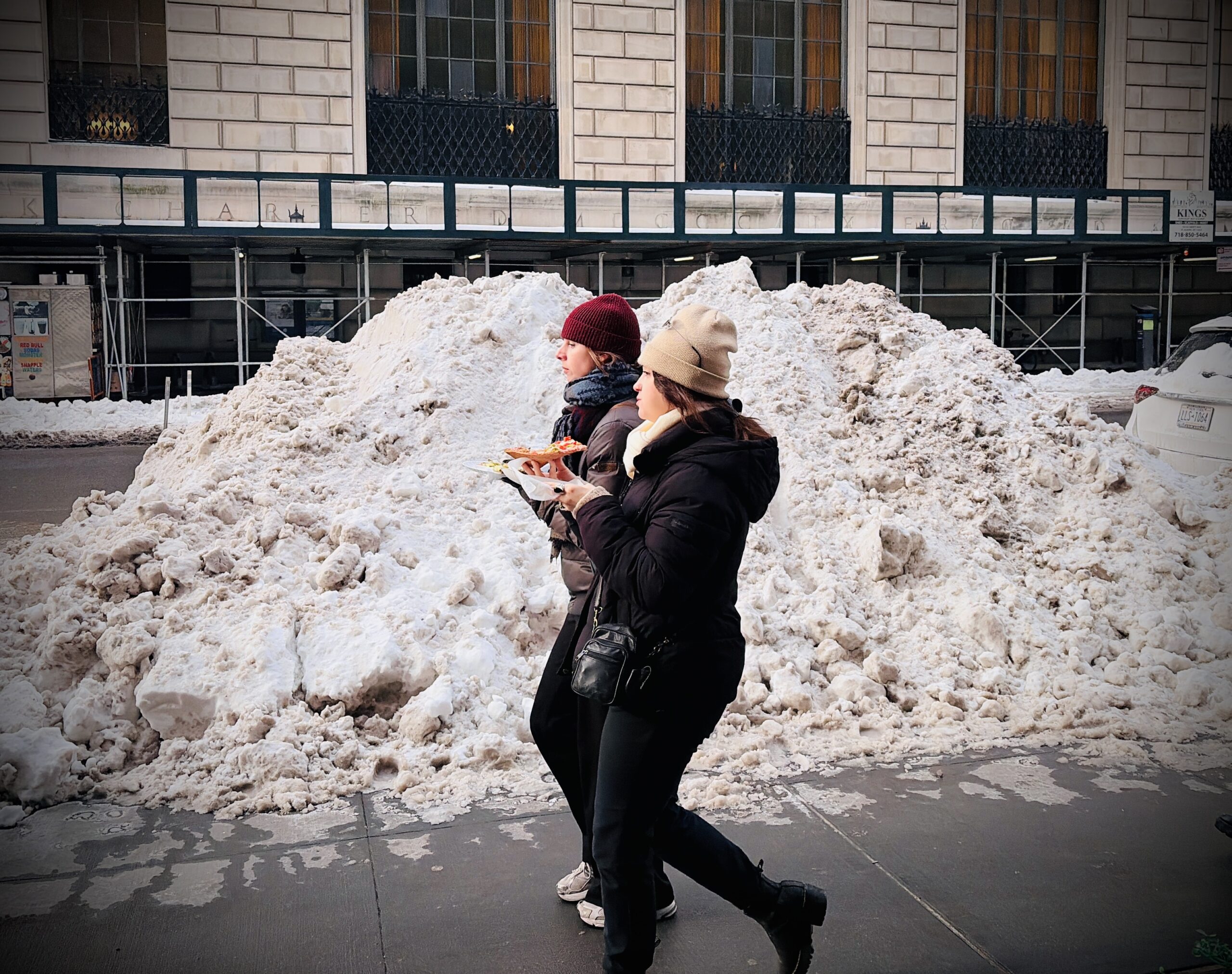 And of course, you complain … which we did. We’re Upper West Siders! The snow, the ice, the slush, the salt, the city not getting rid of the weather. And why are the kids not in school? We gripe, we denounce, we know better. In other words: we bond. Are you cold? I’m cold. We’re cold. But it gets cozily warm in that same boat we’re all sitting in together.