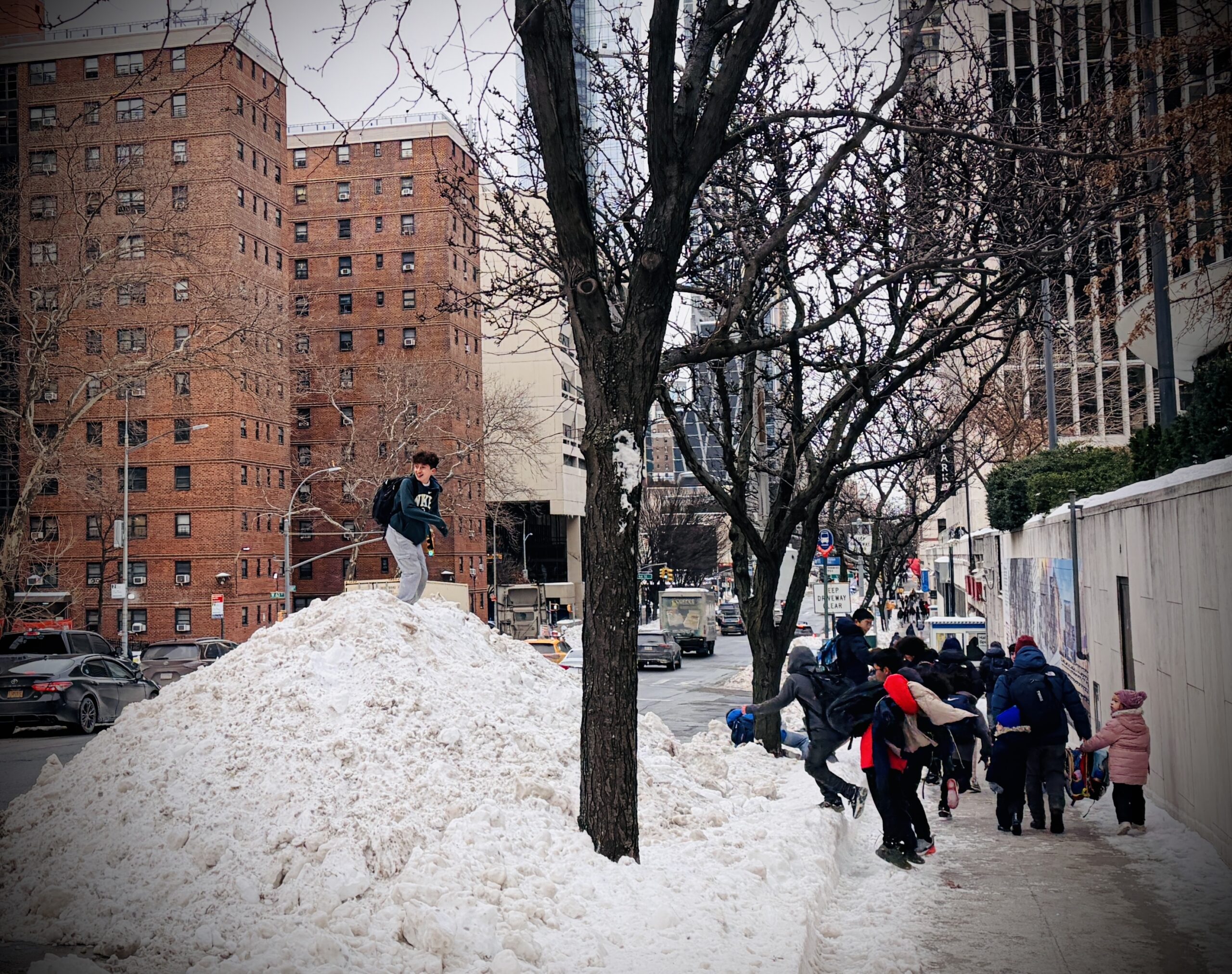 And of course, you complain … which we did. We’re Upper West Siders! The snow, the ice, the slush, the salt, the city not getting rid of the weather. And why are the kids not in school? We gripe, we denounce, we know better. In other words: we bond. Are you cold? I’m cold. We’re cold. But it gets cozily warm in that same boat we’re all sitting in together.
