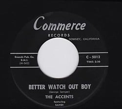 “What Do You Want to Do” and “On the Run” were the next releases, both written by the Accents’ own Gabe Lapano. All of these were top 20 singles in Southern California. By this point, the band has all but abandoned its R&B sound, other than at occasional live gigs.