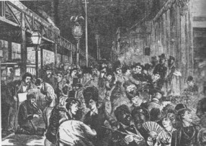 In fact, those girls were most often prostitutes. Nicknamed ‘the prostitutes’ market’, the Haymarket was a veritable sin shopping mall, ladies luring men to tables to buy them champagne, shower them with presents and quite often making their way to curtained rooms in the balcony and upper floors.